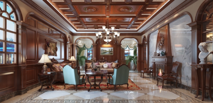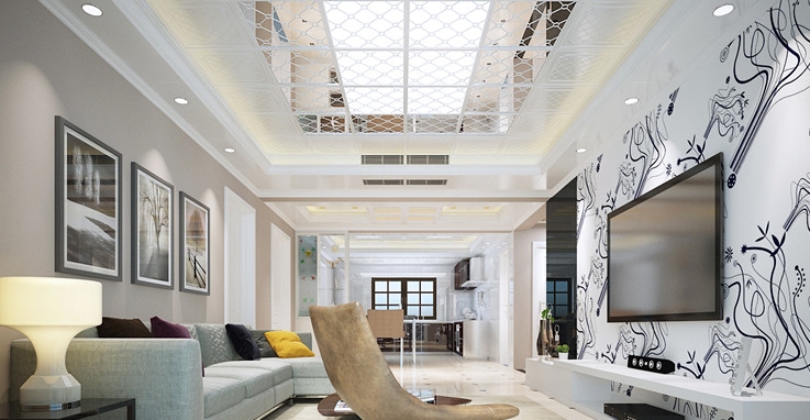 相對典雅的歐式和婉約的中式,美式風格更自由隨意。在吊頂的使用上,也追求明快自在,就如這款鏡面吊頂,讓空間更加敞亮舒適。