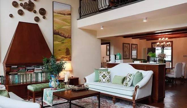 ③除此之外,挑空型客廳里的裝飾和配飾也是非常重要的一點了,可以嘗試在墻壁上掛上符合整體風格的掛畫,或者是根據設計師的建議安裝幾盞造型獨特的壁燈,這些裝飾一烘托,整個客廳就更加大氣了。