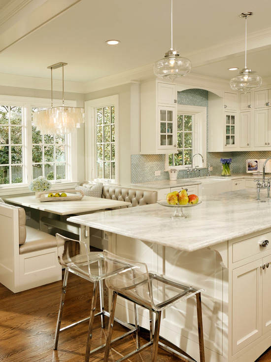 小編推薦:大戶型的廚房里擠進一個卡座餐廳,歐式的垂懸吊燈讓生活的浪漫指數直線上升,簡約不失典雅的軟包卡座透露著輕奢的雅致與高貴。