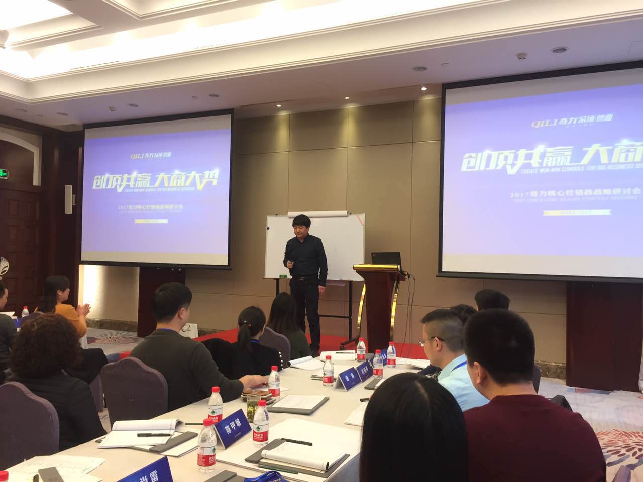8日晚上,“創(chuàng)頂共贏,大商大勢(shì)”戰(zhàn)略研討會(huì)開(kāi)始。由洪總開(kāi)場(chǎng),奇力家人分成7個(gè)小組,回顧分享2016年的營(yíng)銷(xiāo)事件。各組上臺(tái)對(duì)2016年進(jìn)行總結(jié)跟分享,提出疑惑,有黃老師、雷老師、洪總給予建議。黃老師從團(tuán)隊(duì)配置、人員分工、薪資設(shè)置、提升單值,安裝售后等方面給予分享,最后由洪總總結(jié)我們2016年遇到的共性問(wèn)題。