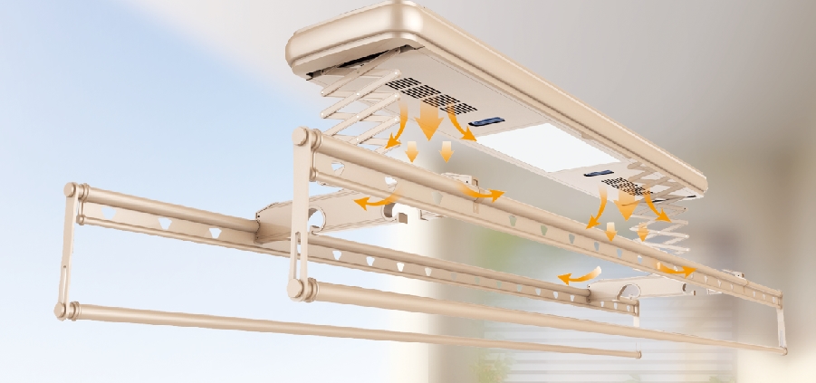 奇力智能晾衣架,一鍵操控,集風(fēng)干、消毒殺菌、自動升降、照明等功能于一身,讓衣物如沐陽光般健康干爽。