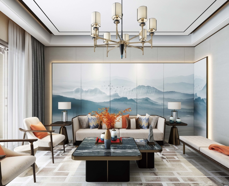 客廳蜂窩大板新中式